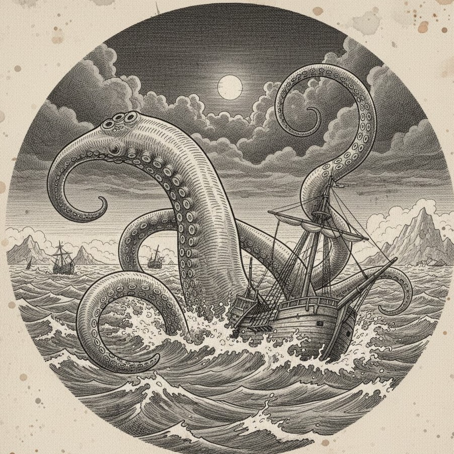 The Kraken stands at the boundary between myths and deep-sea unknowns.