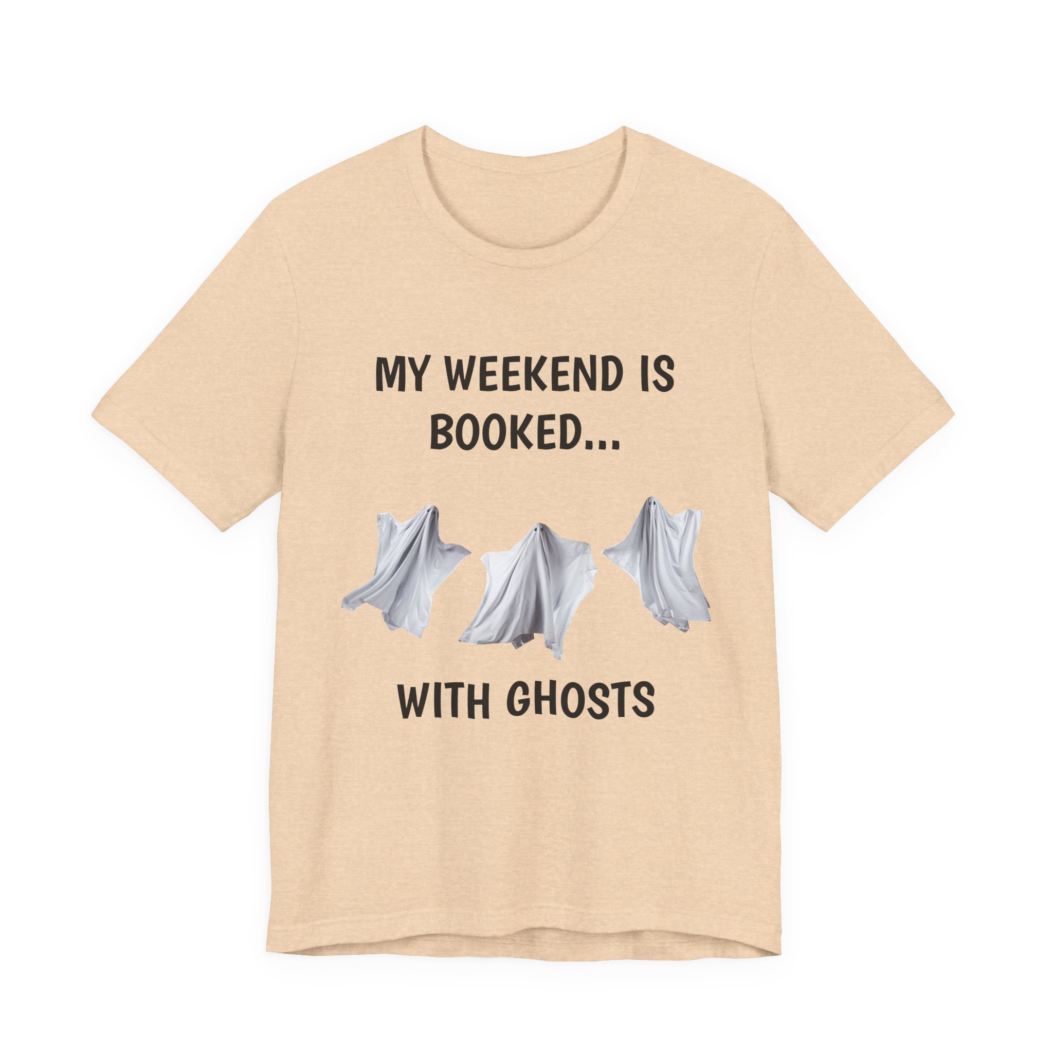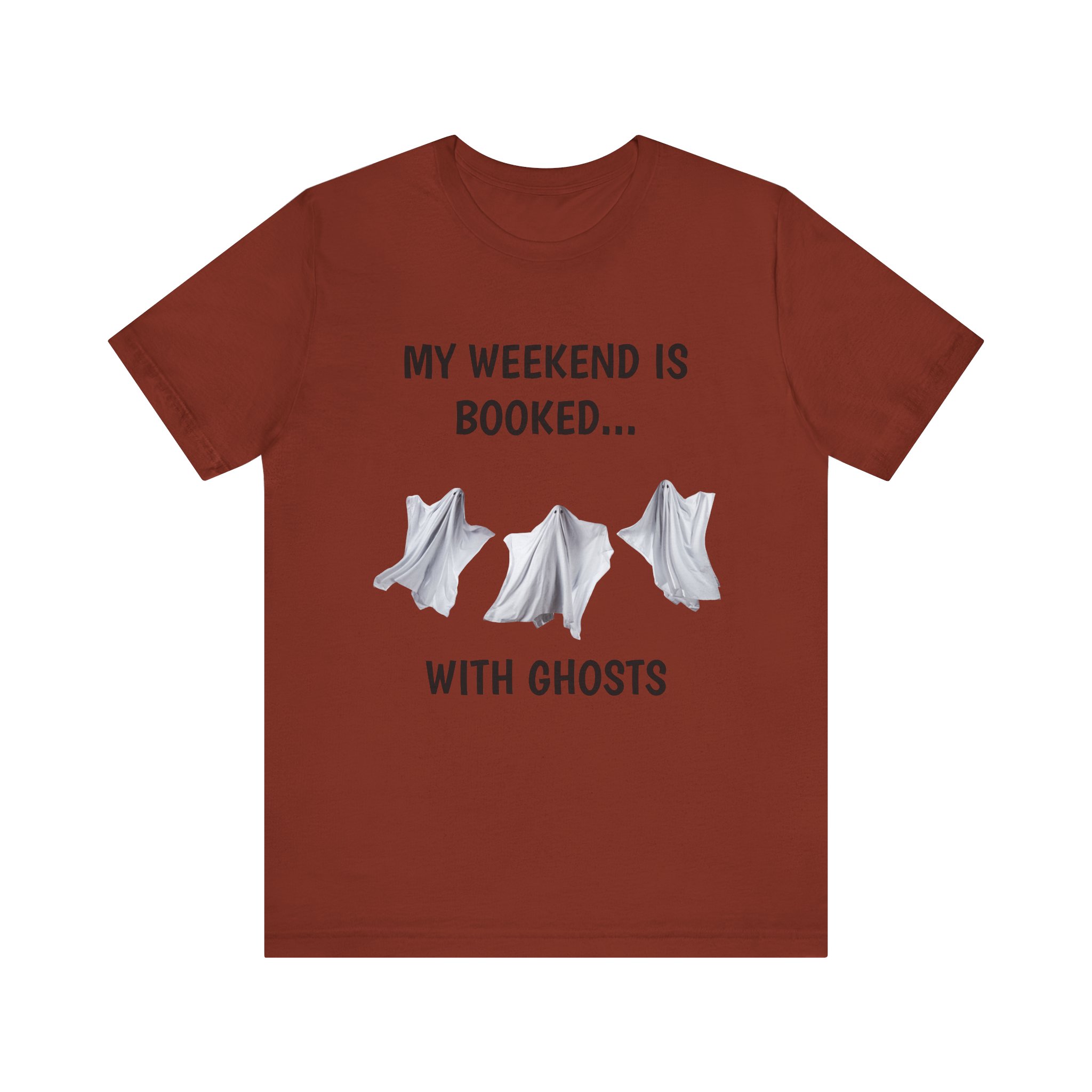 Elevate your casual wardrobe with this unisex jersey short sleeve tee, perfect for those who love playful and spooky vibes. Featuring a fun print that declares ‘My Weekend is Booked… With Ghosts,’ this tee is ideal for Halloween enthusiasts and anyone who enjoys a lighthearted take on weekend adventures. Its stylish design and comfortable fit make it versatile enough for everyday wear, whether you’re lounging at home or hitting the town. Great for parties, themed events, and casual gatherings, this shirt makes a fantastic gift for friends and family who appreciate unique, quirky style.