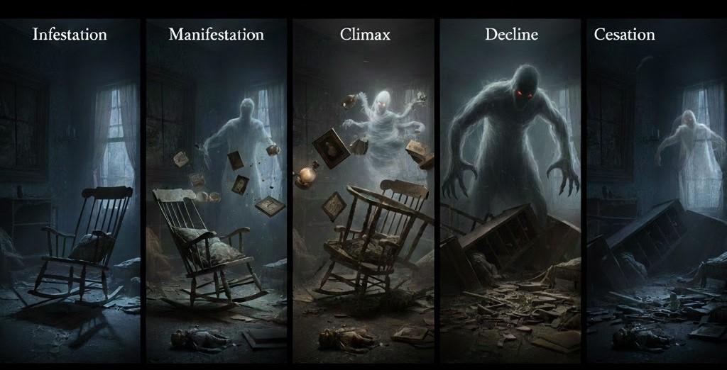 Poltergeist visitations tend to follow a recognizable progression observed across many historical and modern cases. While not every event unfolds the same way, researchers have identified five key stages that often appear in sequence.
